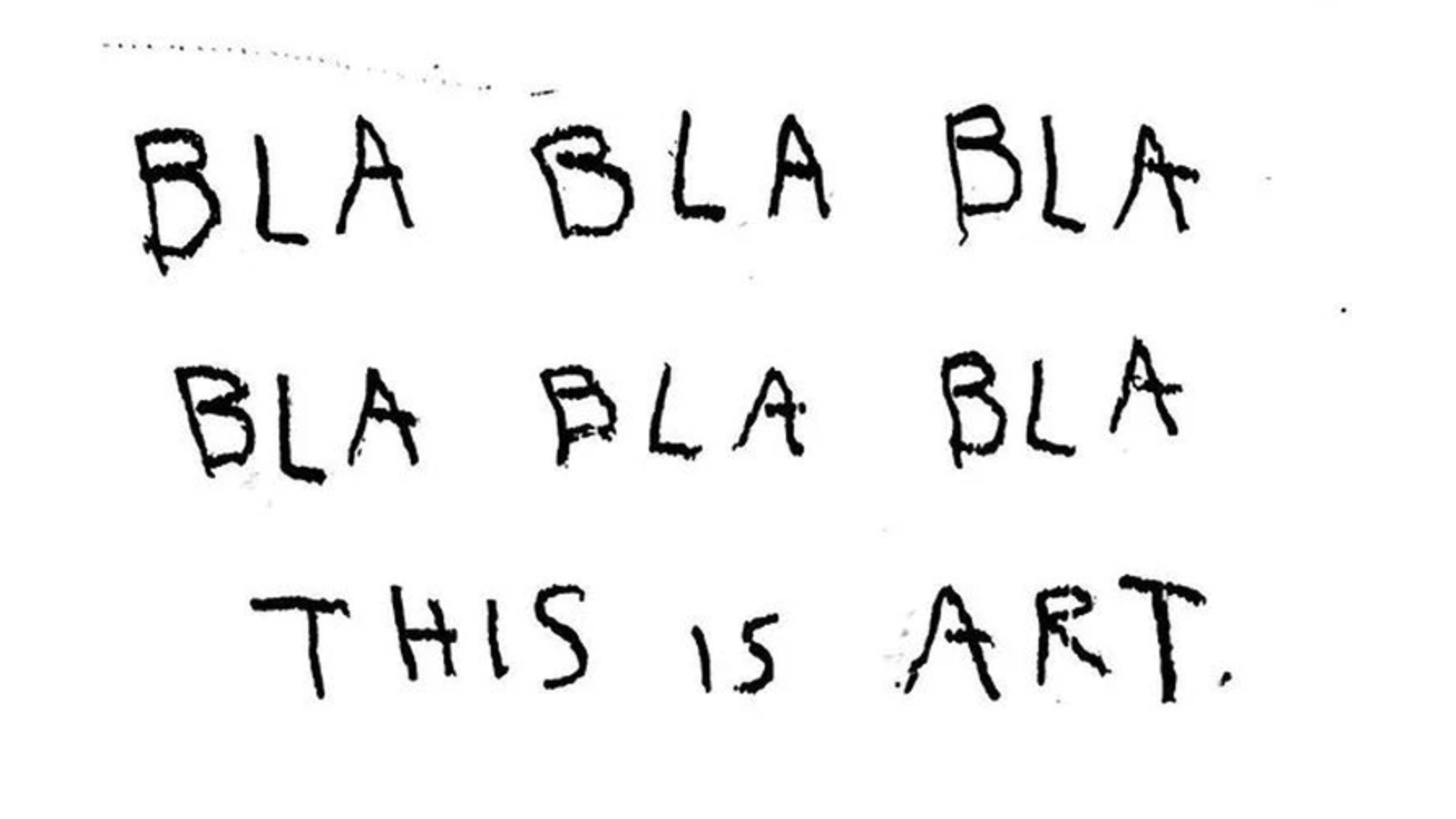 So nothing should distract viewers from his manifesto, CB HOYO needed to clean his canvas. Literally. He now preferred an empty white sheet of paper to a strident pop-art background. This was just an ordinary sheet of paper on which people write different things. One person, for instance, might write the order of the day in black ink. Another, a shopping list. A third, homework for a psychotherapist. A fourth, random thoughts on art. On his sheets of paper CB HOYO puts everything all at once, making public what most people confine to the pages of their private diaries or to notes intended for a limited readership. Frank admissions, existential questions, vulgar jokes, self-flagellation, statements criticizing or doubting what happens in life and art: everything we think about but don’t say.