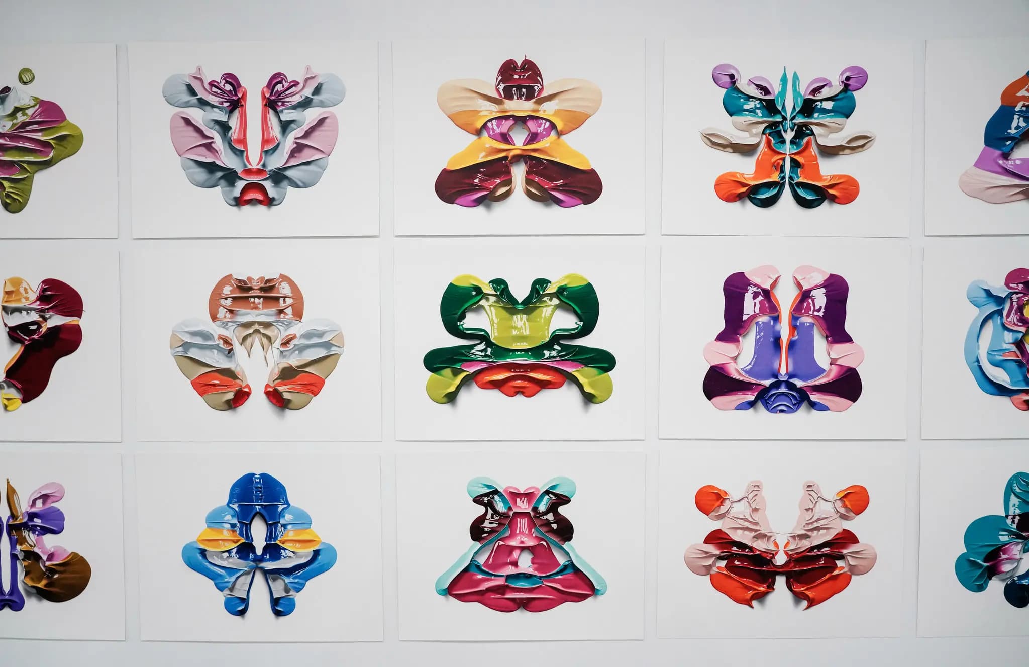 In her work Hendry makes extensive use of photos of blobs of colour. She starts by applying paint to the white surface using a spatula and records the result. The use of a digital image as a reference is a distinguishing trait of hyperrealism. Thanks to the impressively high resolution offered by modern cameras and monitors, the hyperreal pictures created using these visual sources do not so much copy existing reality as deliberately accentuate the materiality of the object depicted. Hyperrealism does not set out to optimize the vision with which it works. Instead of creating picturesque effects, concealing what has to be concealed so as to harmonize the composition, and emphasizing something that has conceptual weight, hyperrealist artists use all the elements of the original image.